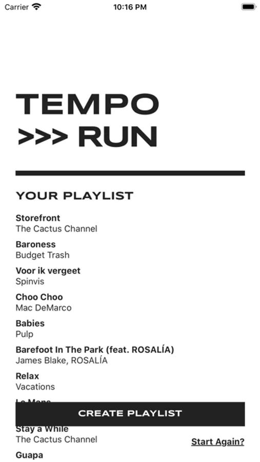 After choosing your personal pace, the app integrates with Spotify to scan the tracks you've already saved and build up a running playlist full of songs you're already familiar with.