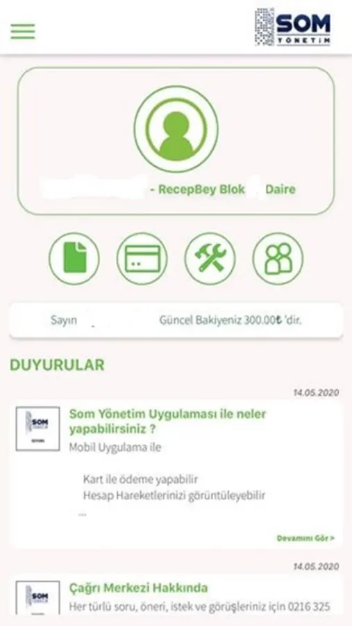 · Duyurular : Yönetimin malik ve sakinler için yaptığı tüm duyuruları görüntüleyebilirsiniz.