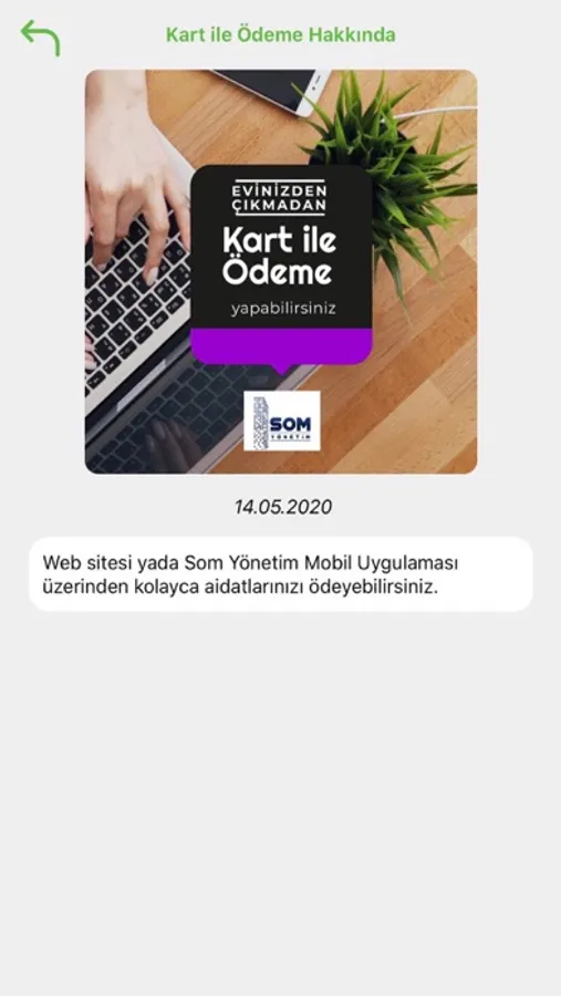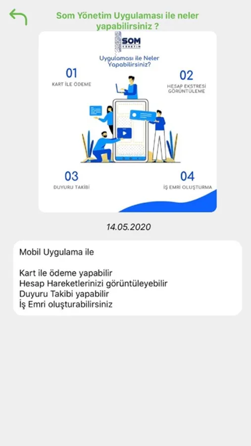 Uygulamamızı sizlerin değerli yorumları doğrultusunda geliştirmeye devam ediyoruz, her türlü görüş ve önerileriniz için info@somyonetim.com üzerinden bize ulaşabilirsiniz.