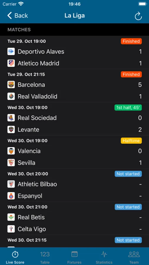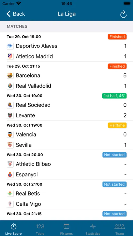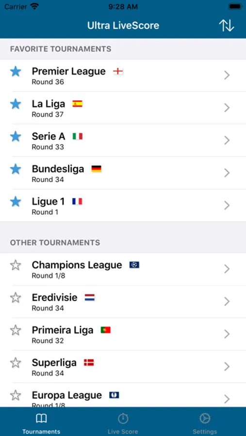 Ultra LiveScore is about football results from all of the big European leagues. Of course including Premier League, La Liga, Serie A, Bundesliga, Champions League, and many others.