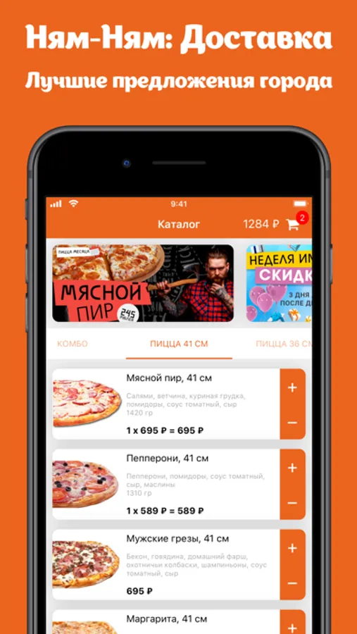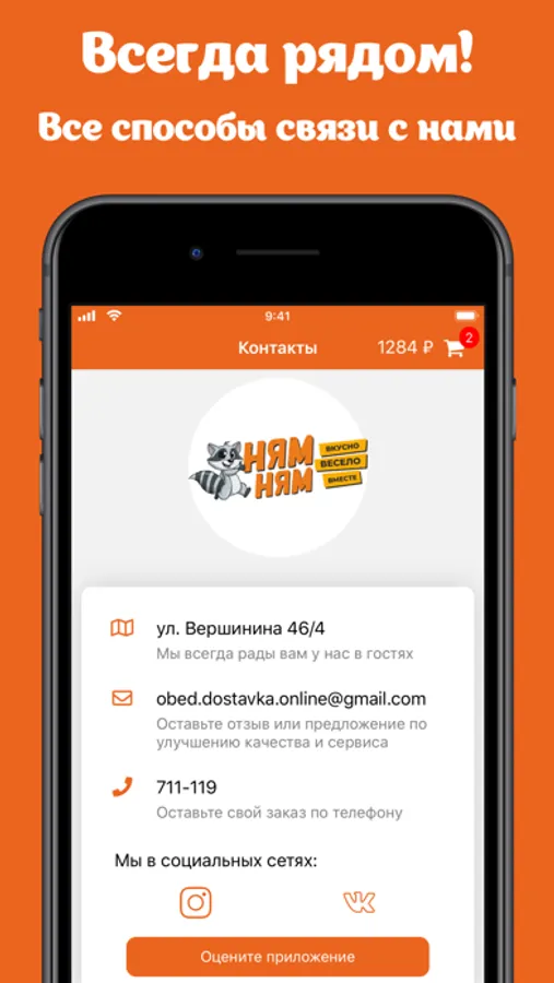 Мобильное приложение Ням-Ням предназначено для заказа доставки еды по Томску и пригороду*: