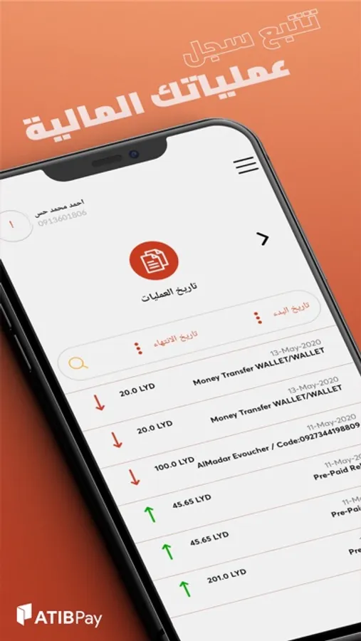 أتيب PAY الخدمة الأفضل لإتمام عملياتك المالية مثل التحويل وتعبئة البطاقات المصرفية والشراء من المحال التجارية وعلى الإنترنت، بسهولة وبأمان تام!
