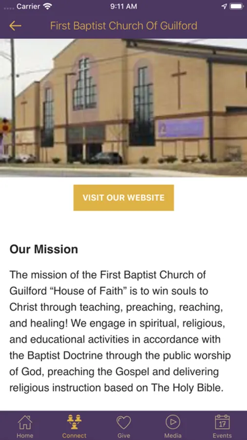 Welcome to the First Baptist Church of Guilford app! Providing content and resources to help you stay connected with our church. The mission of the First Baptist Church of Guilford “House of Faith” is to win souls to Christ through teaching, preaching, reaching, and healing!