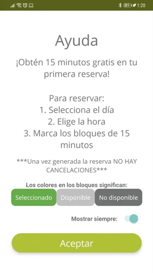 En tu primera reserva obtén una cortesía de 15 minutos y asegura tu lugar, reservando con anticipación.