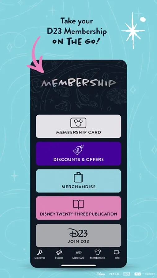 - Access your DIGITAL D23 MEMBERSHIP CARD to redeem eligible member benefits anytime, anywhere (D23 Membership required; learn more at D23.com/join). Active Disney+ subscribers who are also D23 Members can link their accounts to have the membership card reflect this status and be eligible for even more exclusive benefits and offers.