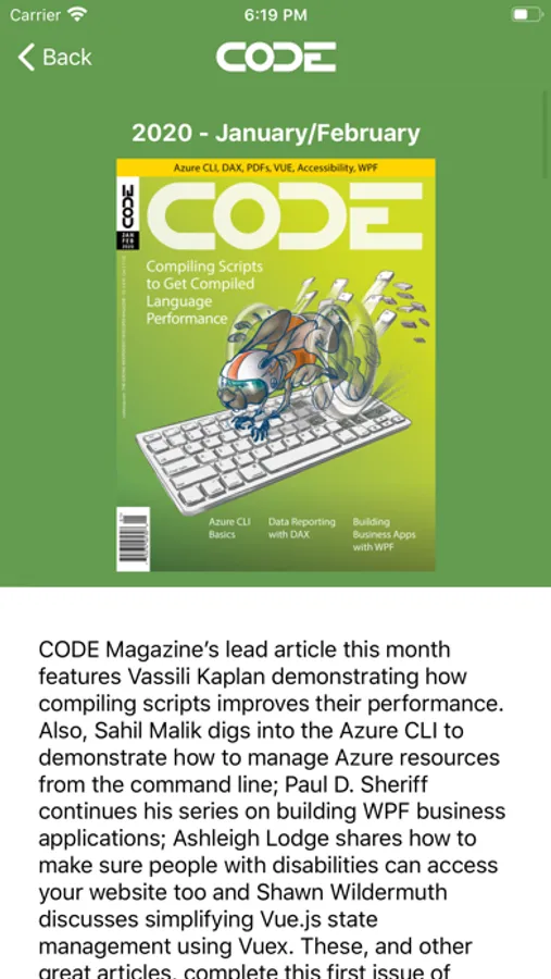 This app allows CODE Magazine subscribers to read all the issues of the magazine they own on their iOS device.