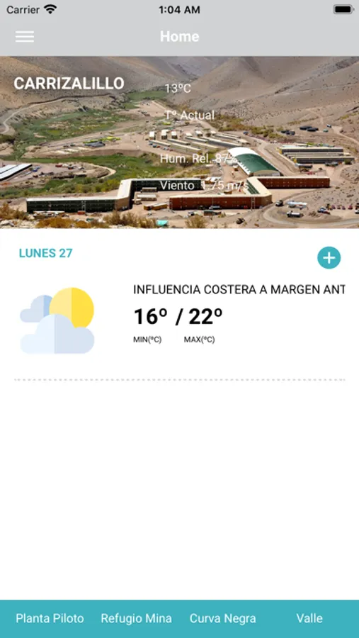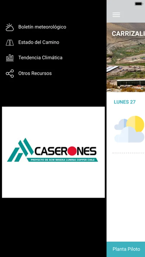 Con esta aplicación podrás encontrar distintos tipos de reportes sobre el clima y condiciones generales para los distintos sectores asociados a la minera Caserones