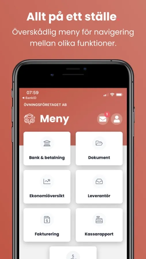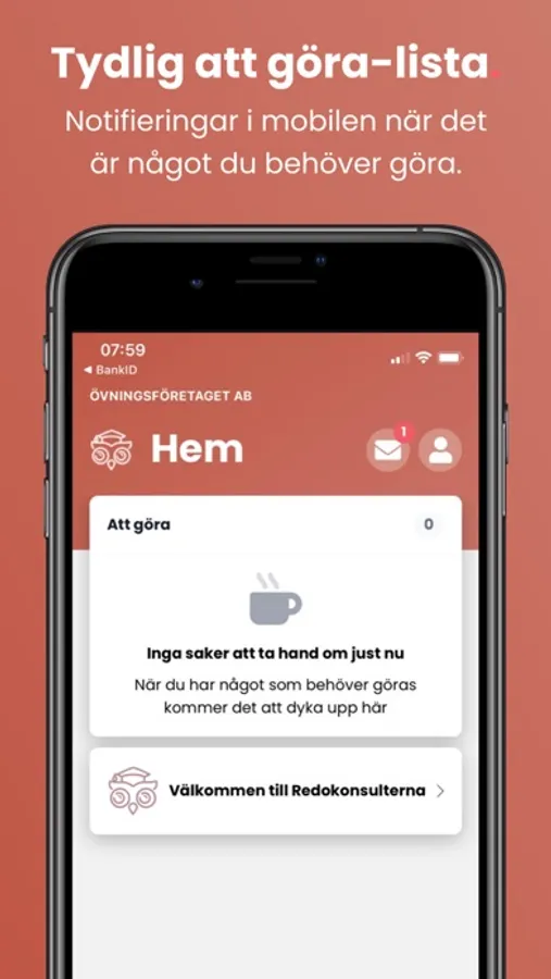 I Redokonsluternas app får du pushnotiser och aviseringar när du har viktiga saker att göra, tex attestera eller betala en faktura. Du kan också skapa, skicka och följa upp dina kundfakturor i appen. För att skicka in kvitton till oss på byrån använder du appens kamerafunktion.