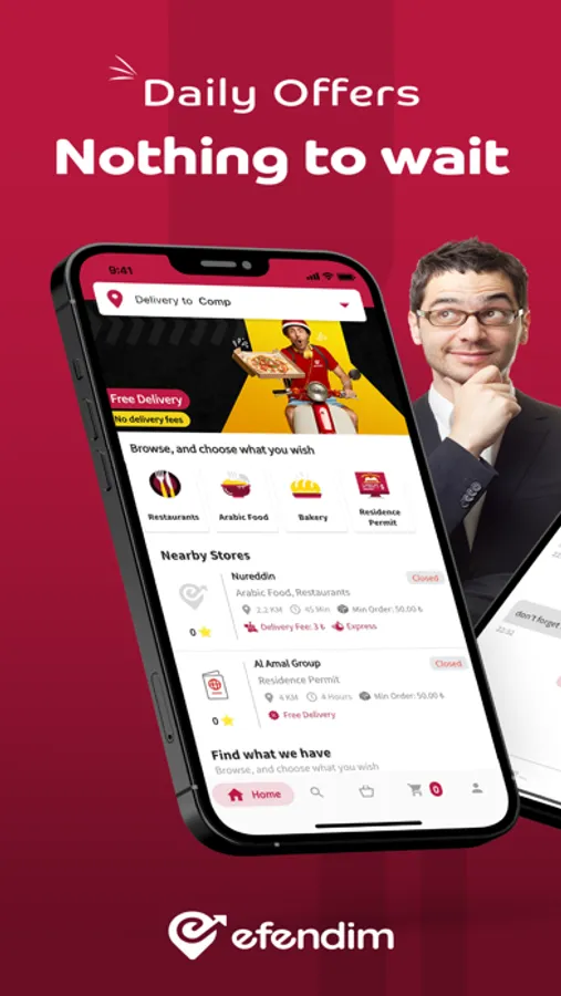 Efendim aims at delivering the best experience to users with different services. More and more delivery options are being added to the app.