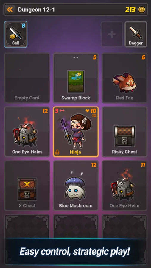 Attack monsters and blocks with weapons, character's Hp, and bombs, and collect points by collecting gold while recovering character's health with potions. You can acquire new dungeons and characters by increasing the number of points while earning skill cards with the power of the cube. You can also unlock characters' abilities and new skill cards with gold from dungeons.