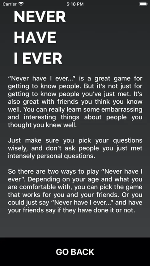 Never Have I Ever is a fun party game which is perfect to get to know your friends better. It’s the must have app for friends and couples!