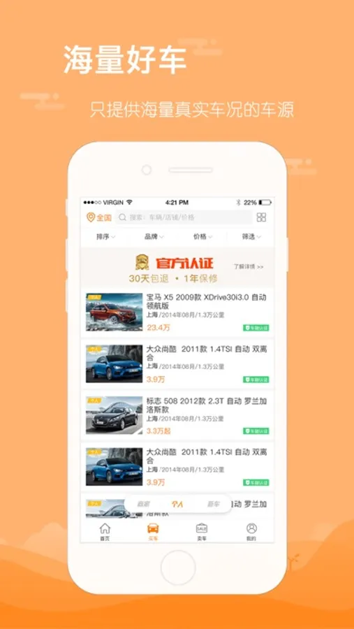 前有车为上海锦卫汽车汽车的二手车在线销售平台,提供二手车买卖居间服务。用户可在线提交卖车信息,通过我们审核的车辆可在平台统一对外展示和销售,通过我们的标准化评估让二手车买卖双方交易更加便捷,