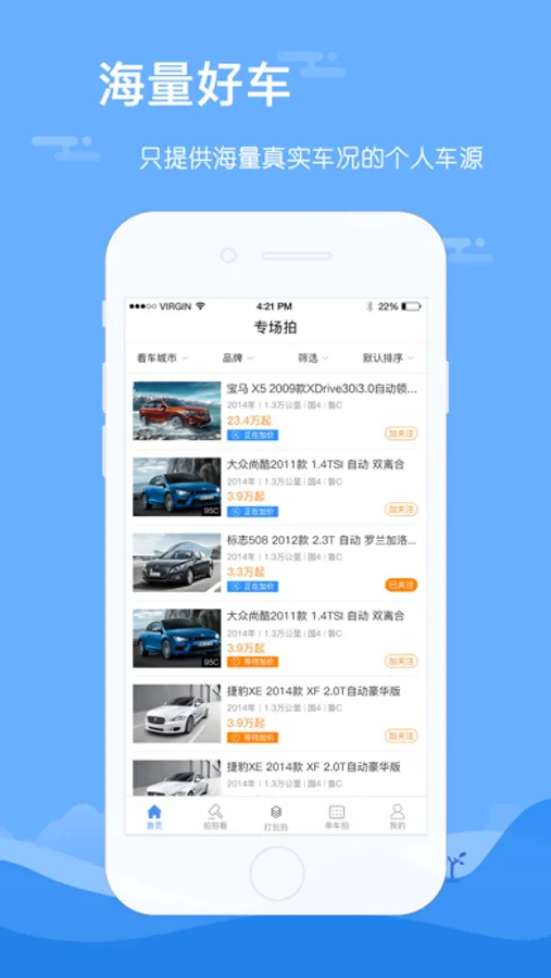 前有拍是锦卫汽车旗下二手车平台,主要为车商提供优质的二手车,用户可以发布卖车信息,商户通过在线竞价购买符合意向的车辆,另外还包括在线缴纳保证金,订单成交等情况。