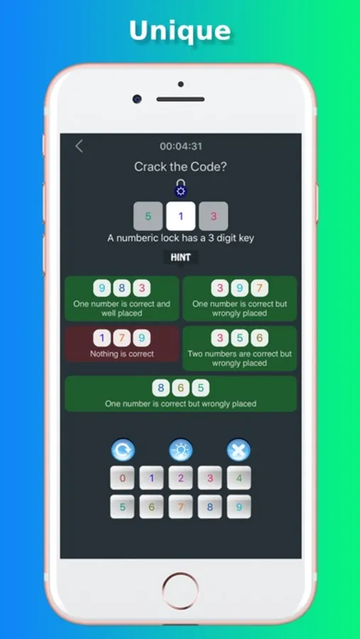 Crack The Code Pro is an Endless Puzzle game that challenges you to find 2 to 5 Correct Numbers from a limited number of Riddles to unlock the Key and compete with your friends