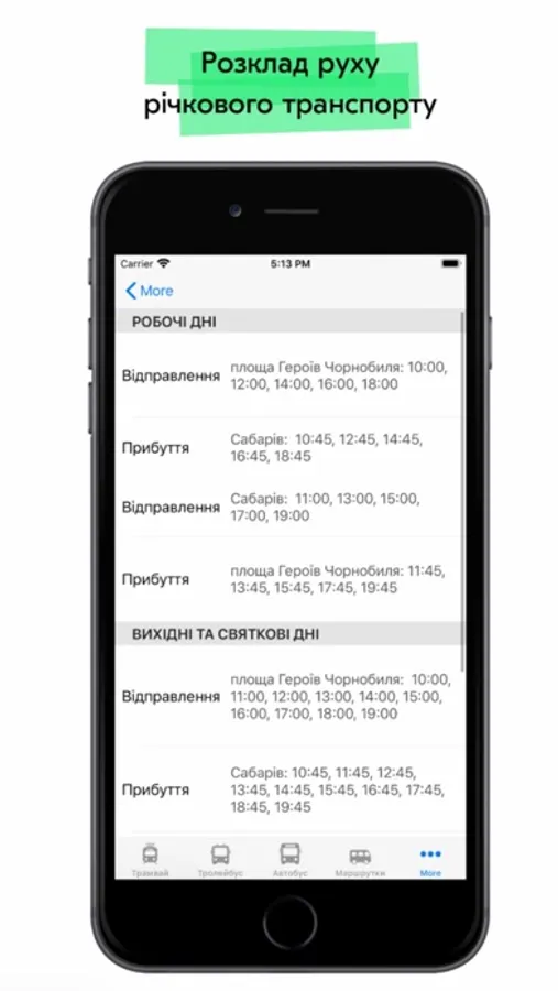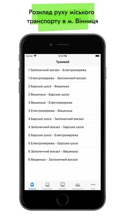 Розклад руху міського транспорту в м. Вінниця. Використовуючи цей мобільний додаток Ви зможете дізнатися розклад руху для трамваю, тролейбусу, маршрутки, автобус і рiчкового транспорту в робочі, вихідні та святкові дні. Для кожного виду транспорту наведено: час відправки в/з депо і інтервал руху. Також є список служб таксі з можливістю відразу ж набрати телефонний номер.