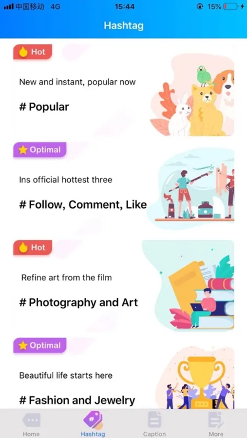 -Pre-defined hashtags for different categories