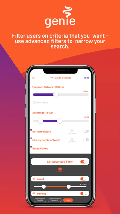 Genie's wish module can be used when you are NOT 'out and about' and is a module whereby users can match with each other based on swiping. The module is specially designed so that it removes random right swiping by users thereby giving you better matches.