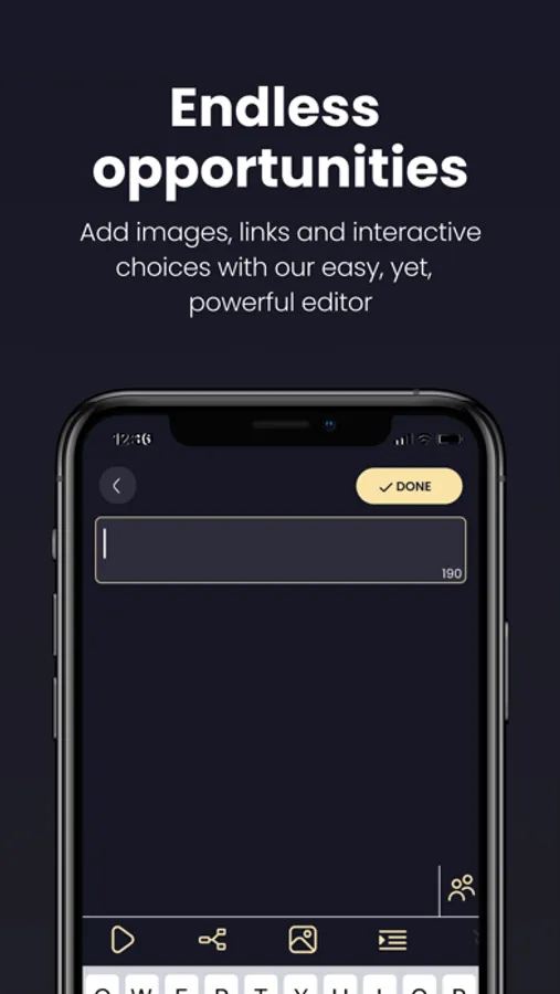 Add links, images, interactive choices or write with your voice, using our ridiculously easy yet powerful editor.