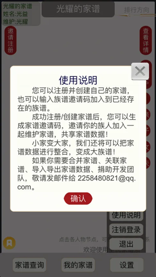如果你需要合并家谱、关联家谱、导入导出家谱数据、捐助开发团队,敬请发邮件给 2258480821@qq.com。
