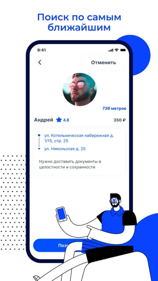 После того, как найдётся ближайший поблизости курьер, заказ вступит в свою силу. Можно позвонить курьеру, если возникнут вопросы, а также отменить заказ в случае утраты связи с ним или по личным причинам. Оплата курьеру происходит наличными или переводом на карту. После успешного завершения заказа обязательно оцени работу курьера – данный отзыв помогает регулировать рейтинг и работу курьера. Спасибо за внимательность!