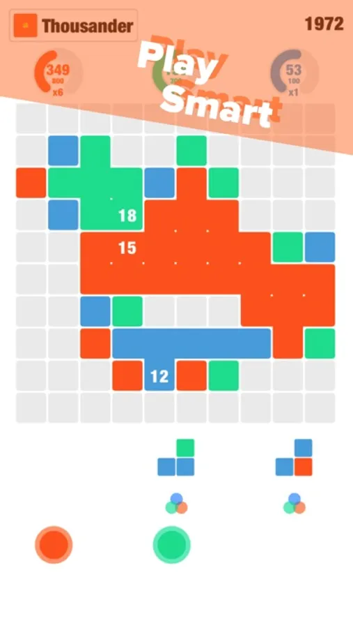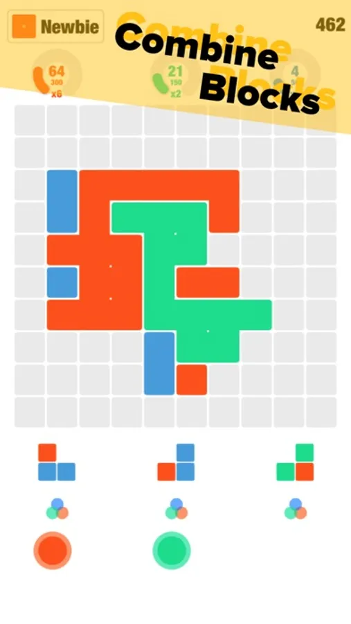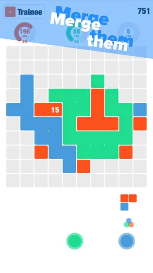 Casual puzzle game based on merging blocks into zones that can be combined into one block