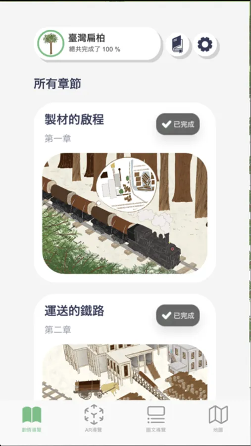 嘉義製材所App結合AR技術搭配動畫,讓您透過手機或平板一覽當年原木到木材的製作流程,以活潑生動的故事內容及精緻的3D建築影像,帶領大家一睹嘉義製材所的歷史場景。