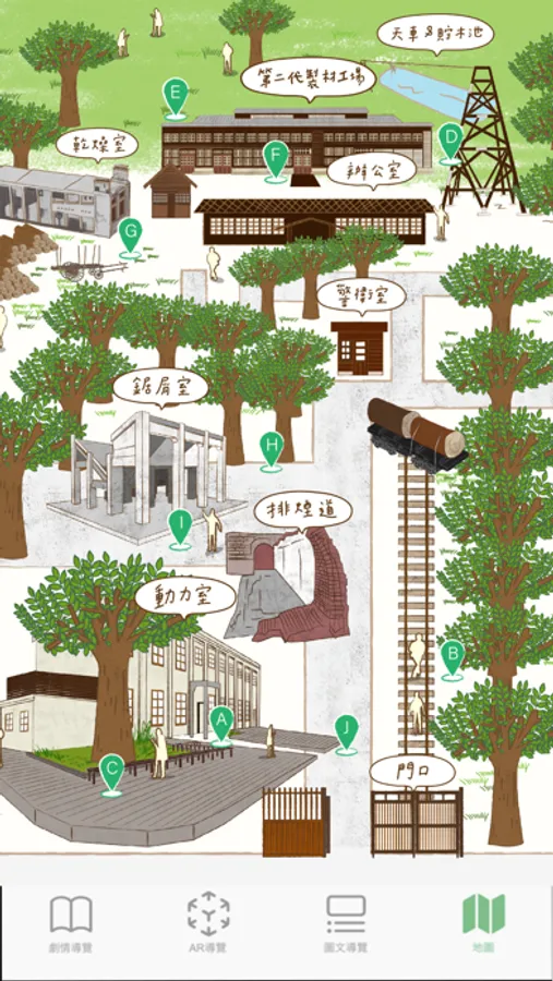 地圖頁面提供園區地圖,散步在嘉義製材所。
