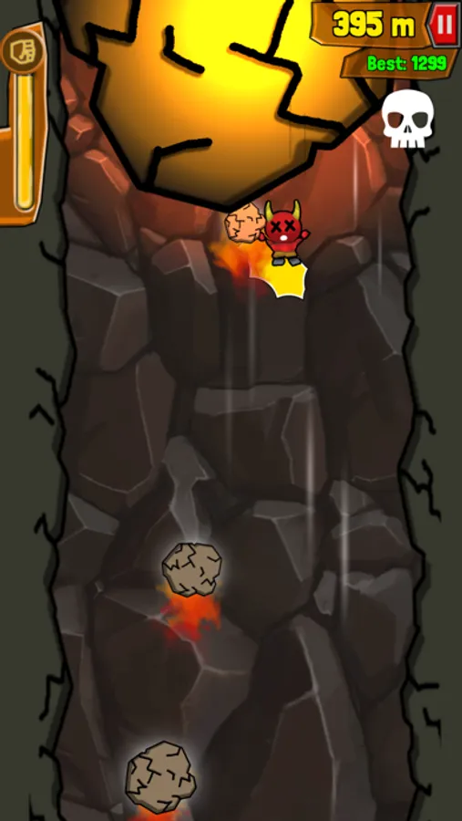 Diablo Dave is sentenced to the rocky boulder filled pit full of all kinds of hazards. You will need to ninja dodge and weave but if you collect enough orbs for a boost; you can SMASH through everything!