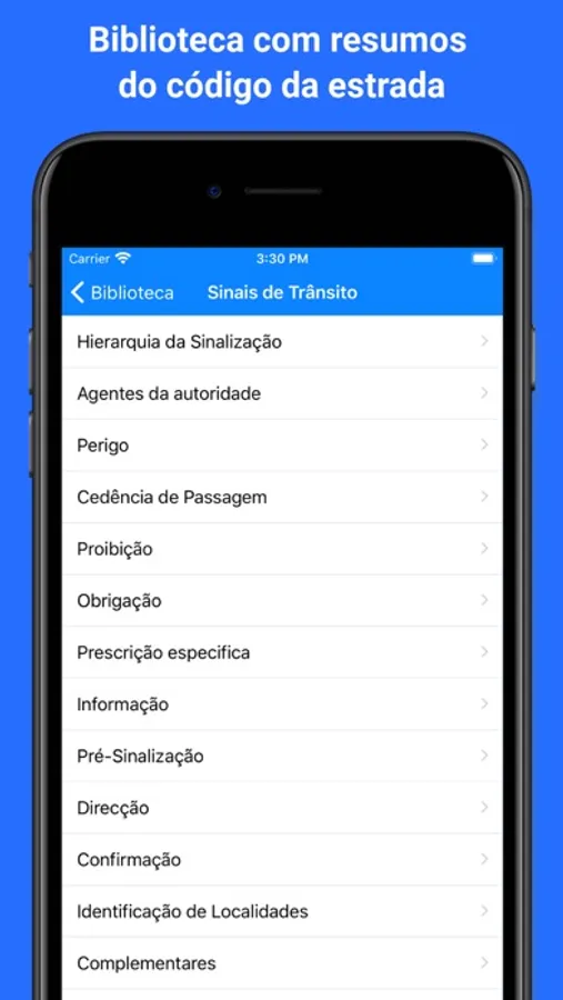 Além dos exames podes contar com uma biblioteca de conteúdos. Aqui encontras resumos dos vários tópicos do código da estrada.