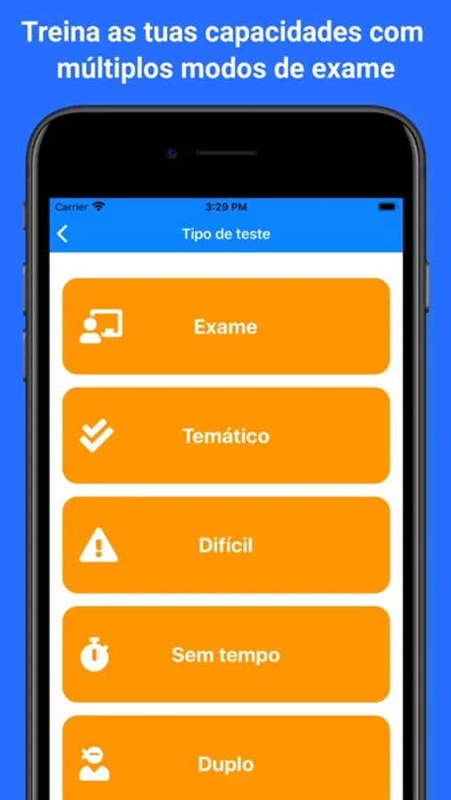 Se já achas o modo de exame fácil então podes praticar usando o modo de teste duplo, onde tens de responder ao dobro das perguntas em metade do tempo!