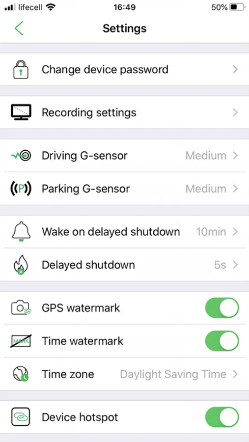 You can directly connect your phone to the dashboard camera via LTE network or via Wi-Fi.