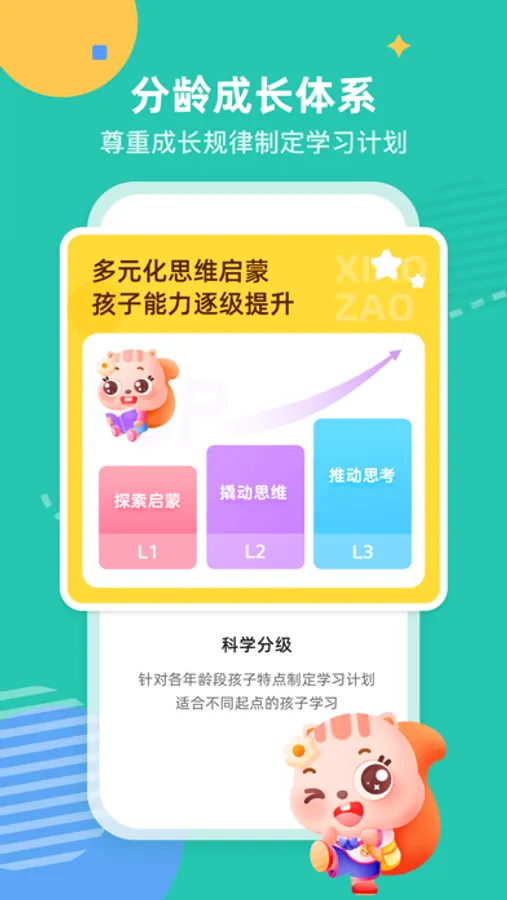 小早启蒙是专注于3-8岁孩子全面成长的的素质启蒙平台,由美国上市公司高途集团孵化,现在已经成长为拥有阅读、表达、思维、英语、美术等产品的独立品牌。小早启蒙结合孩子在每个阶段的成长特点,推出了适合孩子主动探索的分龄成长计划。结构合理,内容丰富,互动多元有趣,专业老师全程陪伴,全面提升孩子的语言、思维和表达能力。