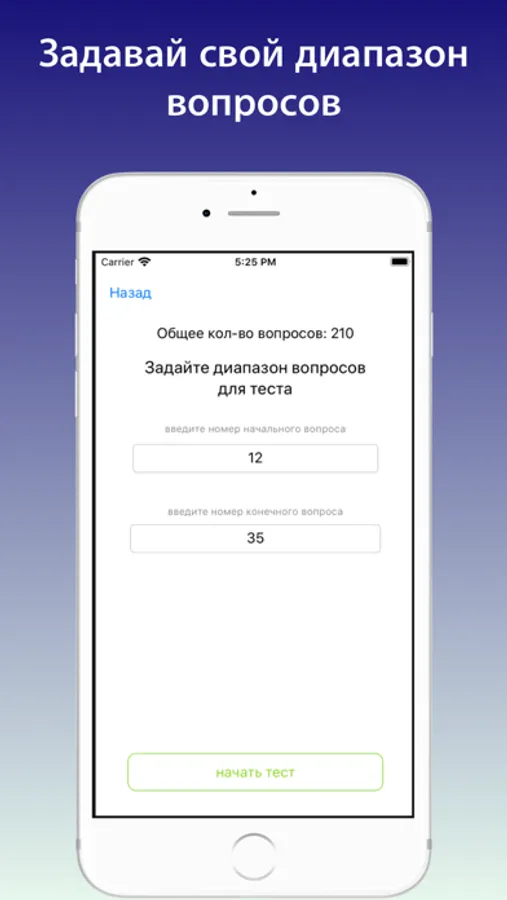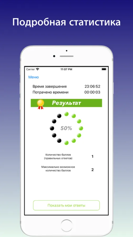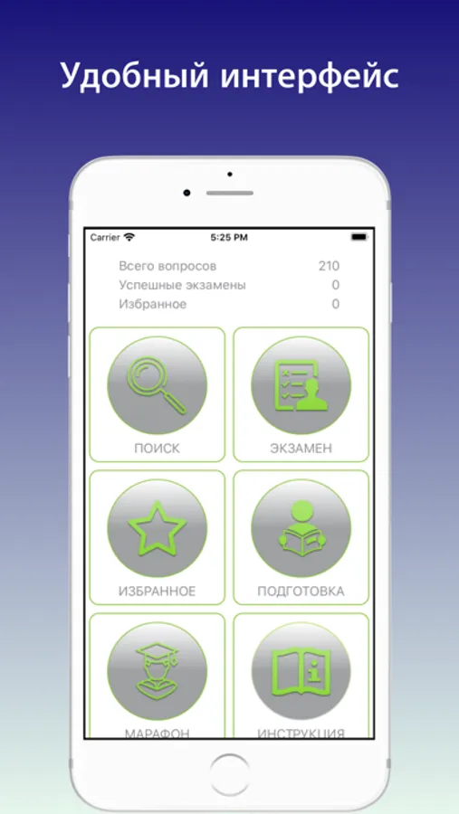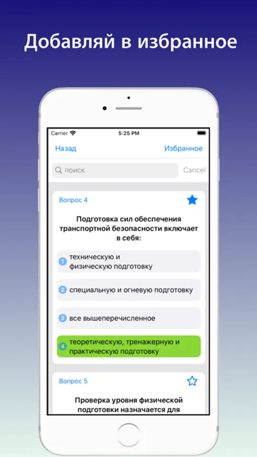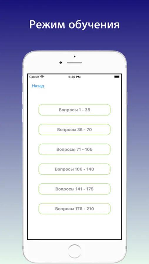 • Подготовка - Позволяет изучить вопросы в текстовом формате с отмеченными правильными ответами;