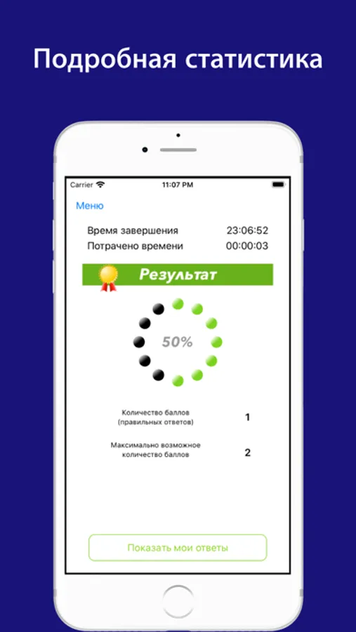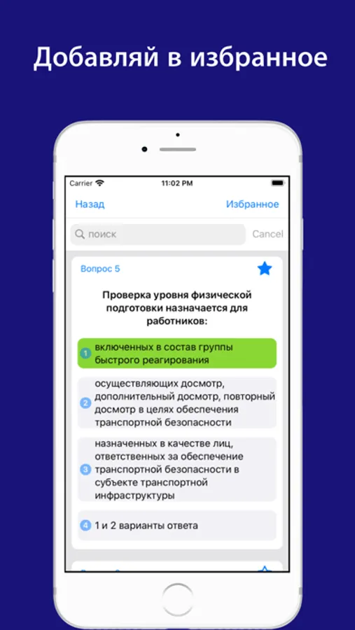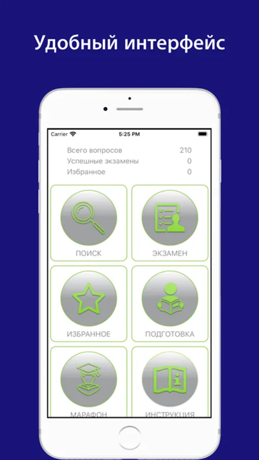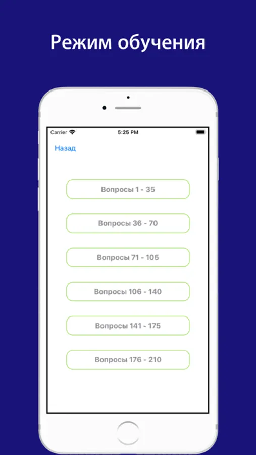• Подготовка - Позволяет изучить вопросы в текстовом формате с отмеченными правильными ответами;