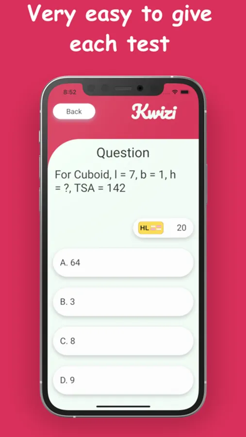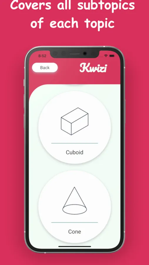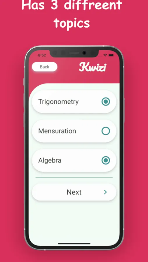You will first of all select difficulty. After that, you will select the topics you want the questions to generate. Then according to the topic(s) selected, you will select type of questions of mensuration like shape , and dimension and also polynomial type in algebra. After selecting all the things, it will show the question. You will have to choose from four different options and after selecting, it will show next question and once select you can't change it. There will be in total 5 questions. If the question is right then you will get 5 coins and if question is wrong then 1 point will get deduced. All the coins are stored online and within your account. Hence you can use multiple devices with same account and all will share coins.