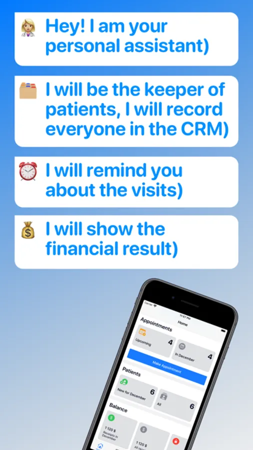 The key concern of every dentist is the Patient. All attention is focused on the Patient, in this regard, Dental Assistant will help you to pay attention evenly to all Patients.