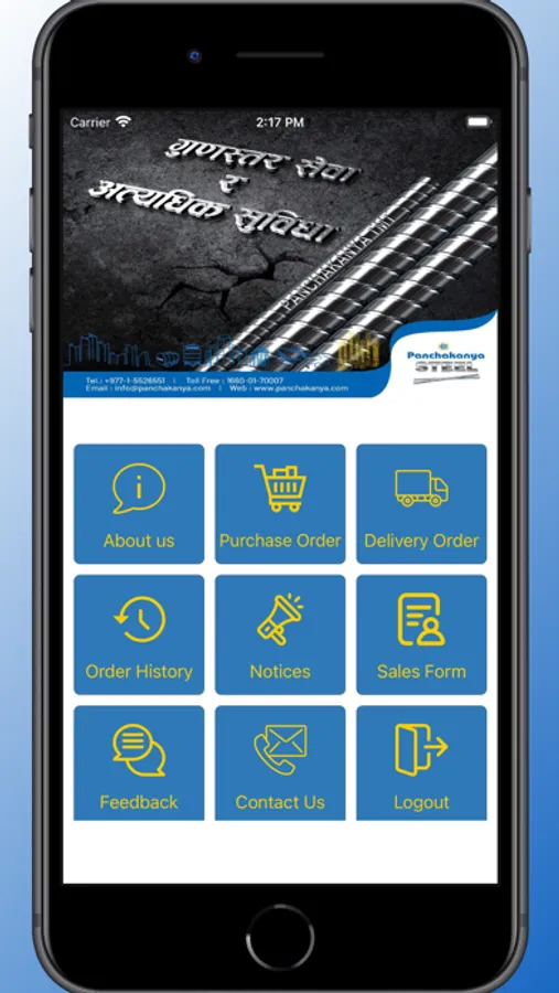 The Panchakanya Steel Dealers can easily place 'Purchase Orders' and 'Delivery Orders' of their required products among the different categories.