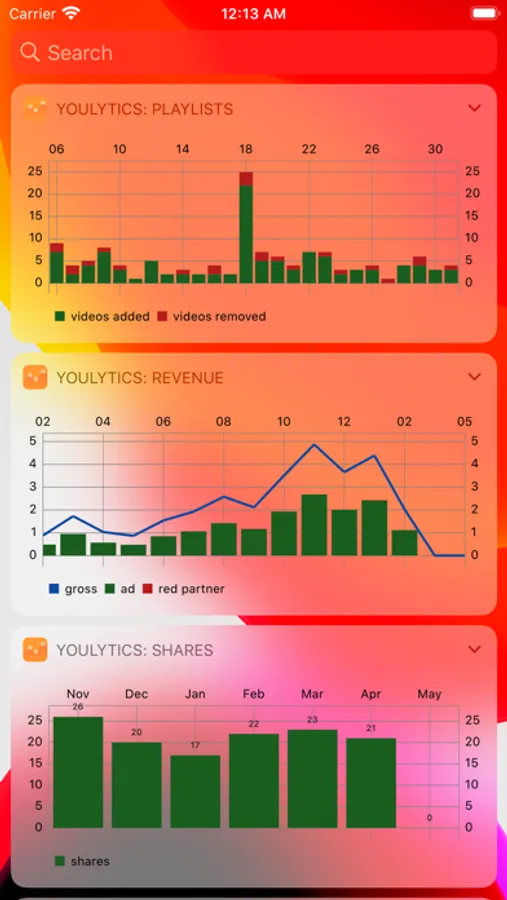 This application is an unofficial widget set for the Google application YouTube Studio.