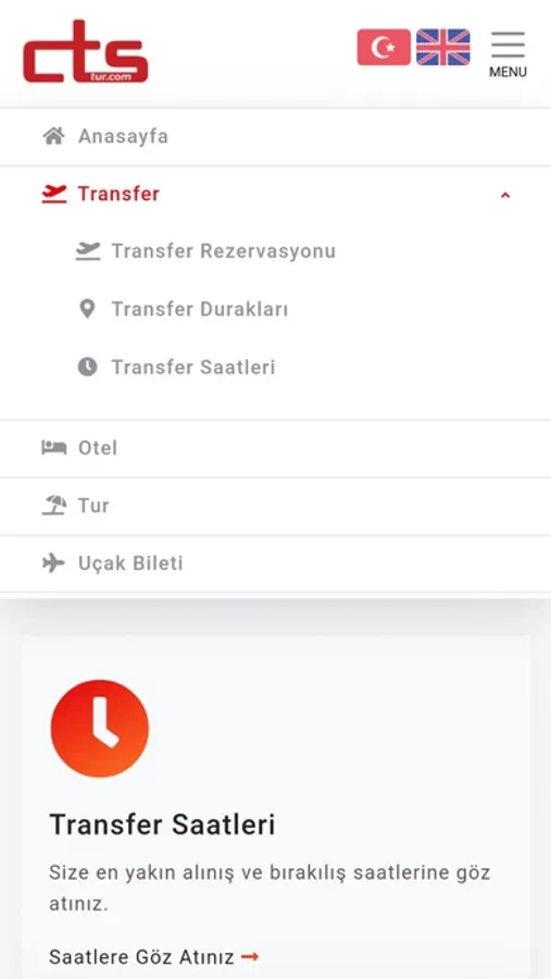 CTS Tur rezervasyon uygulaması sayesinde Tur, Otel, Transfer, Uçak Bileti, Otobüs Bileti rezervasyonunuzu kolayca yapabilir, rezervasyonlarınızı takip edebilirsiniz.