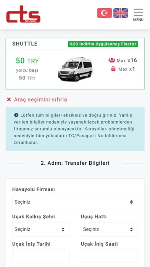 Akıllı rezervasyon uygulamamız havalimanı transferi ya da otobüs rezervasyonlarınızda aracın nerede olduğunu da takip edebilmenize olanak tanımaktadır.