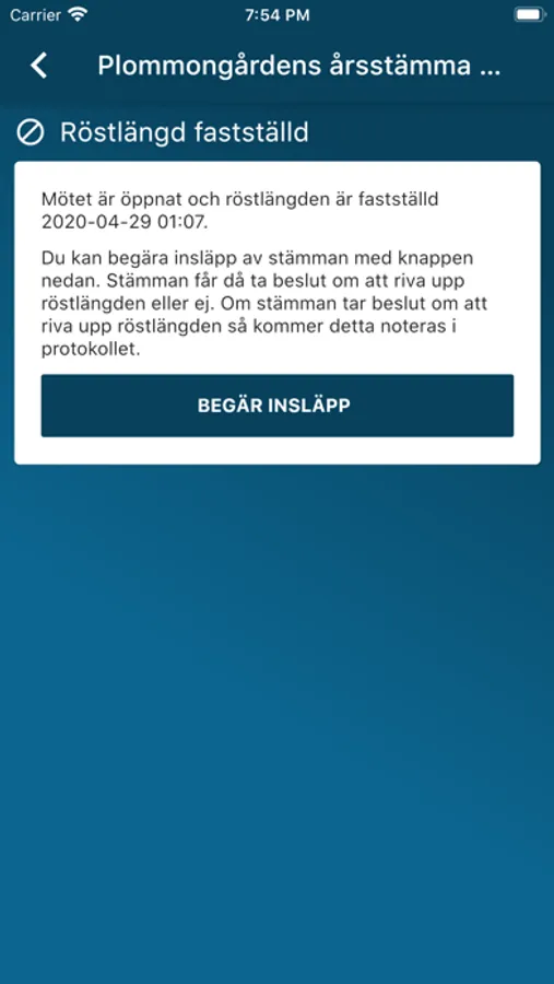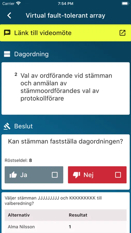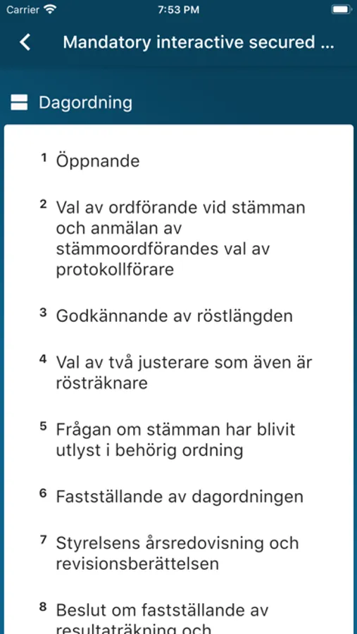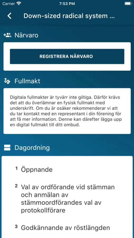 Vår mobilapp identifierar röstberättigade med BankID och möjliggör röstning via digitalt deltagande på stämmor och möten.