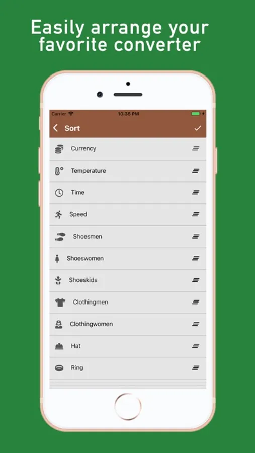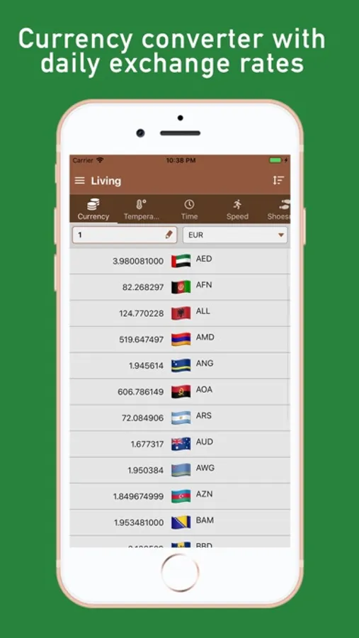 - Living : exchange rate, temperature, time, speed, shoes, clothing, hat, ring