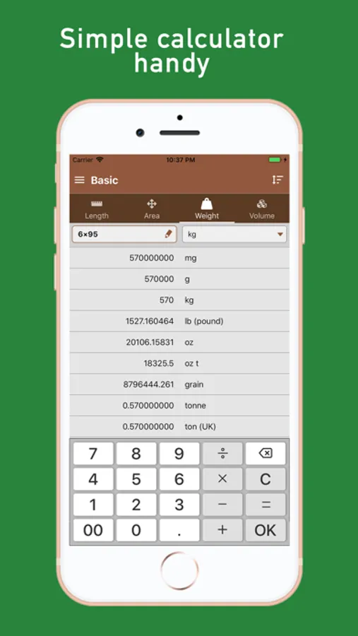- Basic : length (distance), area, weight (mass), volume (capacity)