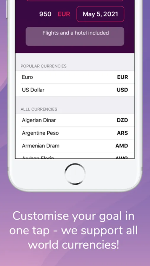 - we support your currency - track your goals in any world currency of your preference