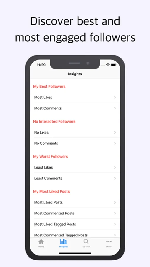 - Best followers who left the most likes/ comments to you.