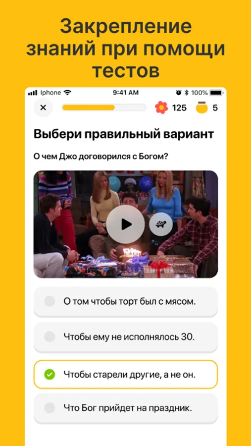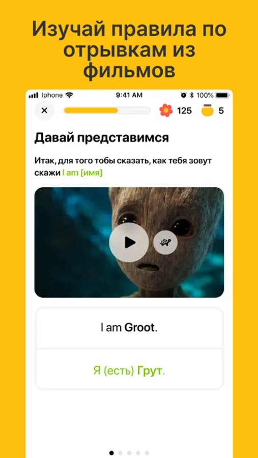 Каждый урок - это десятки наглядных примеров использования английского языка в его родной среде. Тебя ждут сотни отрывков из популярных фильмов, сериалов и мультфильмов.