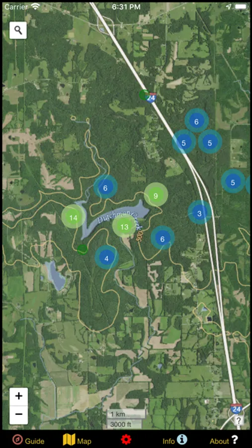 This app is designed for the wilderness! Integrated geolocation makes it easy to figure out exactly where you are and track your precise movement, even in the thickest of tree stands. You can download offline map tiles in advance if you are planning to venture beyond the reach of a cellular connection in your quest for fungus. It works just fine in 'Airplane Mode'!