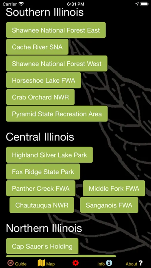 There is a wealth of useful information including descriptions of the different mushrooms and details on their characteristics. These sections even have buttons which will filter the map to show only tree species that are associated with a target mushroom! It is truly that easy...you want to find morels? Turn on the app, Show Morel Trees, and plot your GPS location to find the nearest forest stands where morels likely spawn.