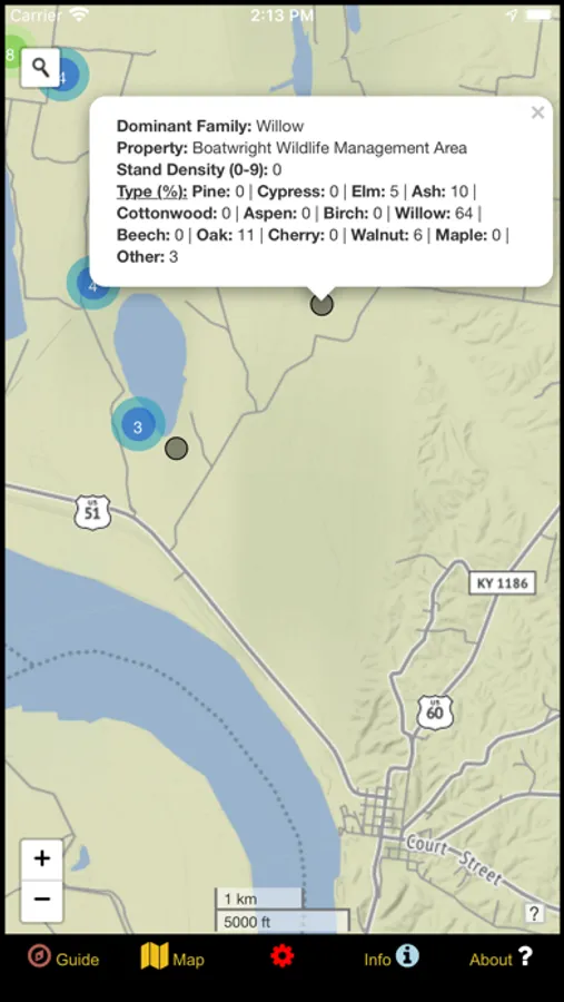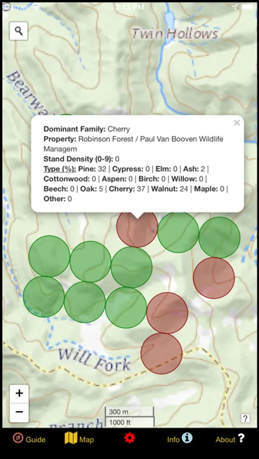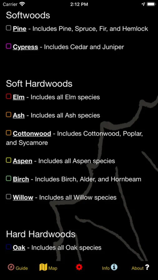 You can manually toggle given tree species on or off if you're an arborist specifically interested in forestry rather than mushrooms. This app is a great way to discover old forest stands or to learn how to identify certain types of trees by look. If you are interested in finding birch bark, oak acorns, apple trees, sugar maples, walnuts, or hickory nuts, just turn on a given layer and eliminate the guessing and frustration! Need some pine needles and cones for an art project? Pick from thousands of woodland patches laden with beds of them!