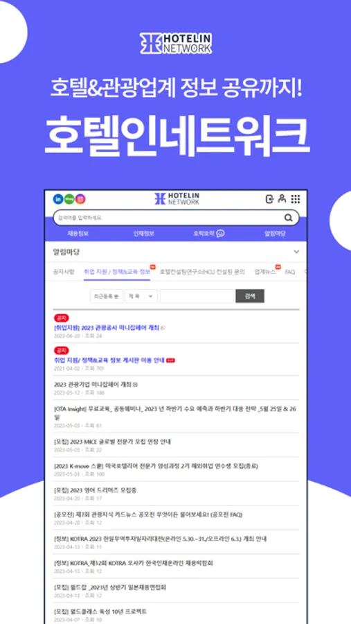 호텔을 기반으로 리조트, 골프클럽, 카지노, MICE. 미쉐린 레스토랑, 외식, 여행사, 학교 등 호텔&관광 전문 직무 중심 채용 플랫폼입니다.